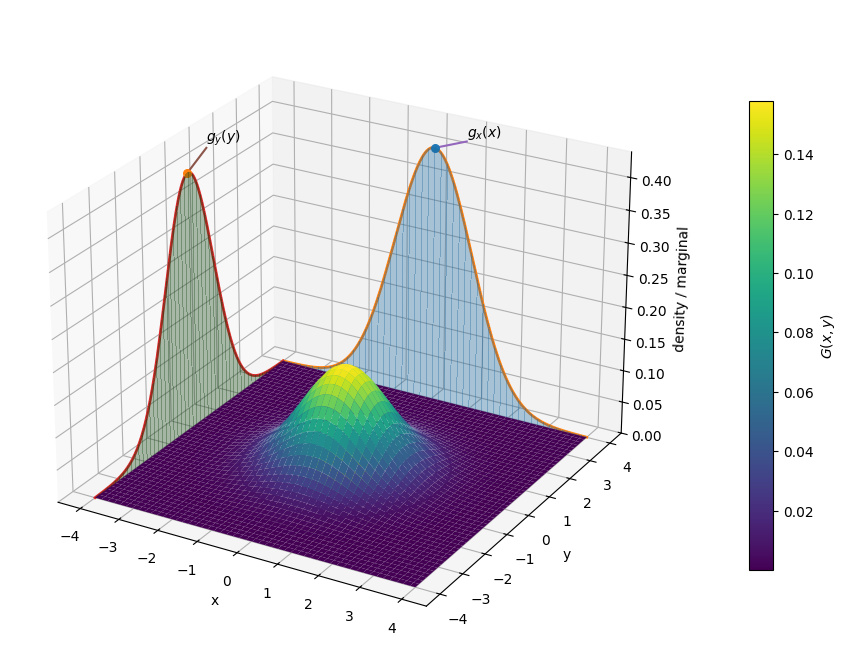 Similarly, the marginal distribution in the y-direction is a 1D Gaussian distribution with standard deviation σ: